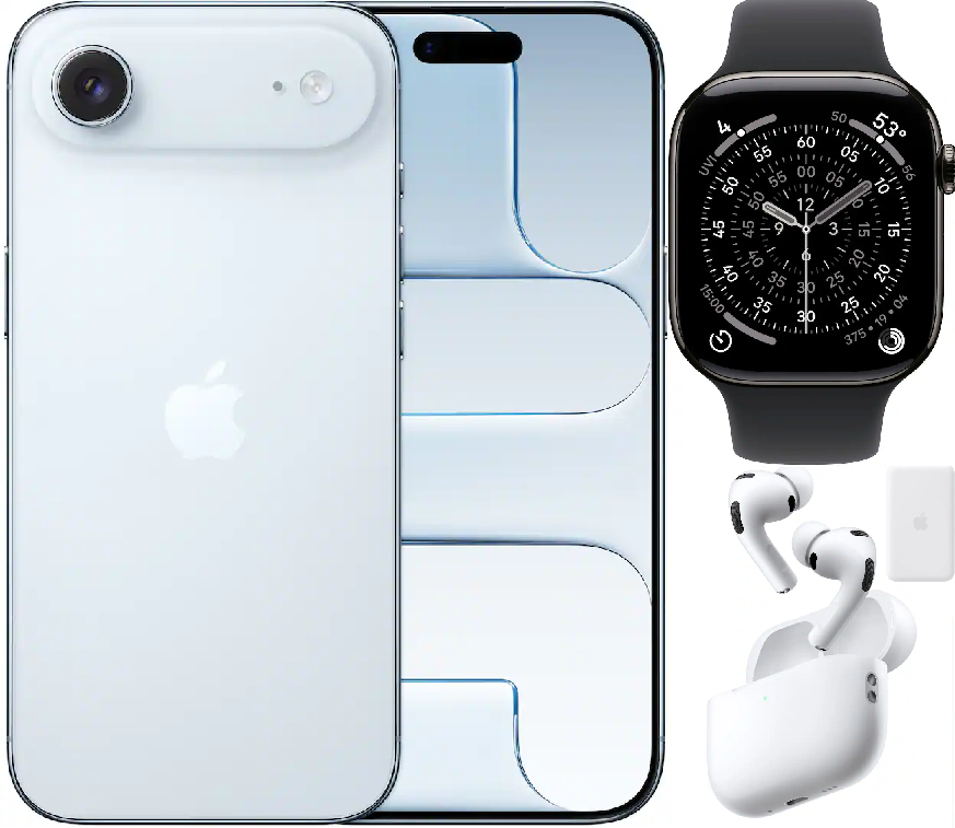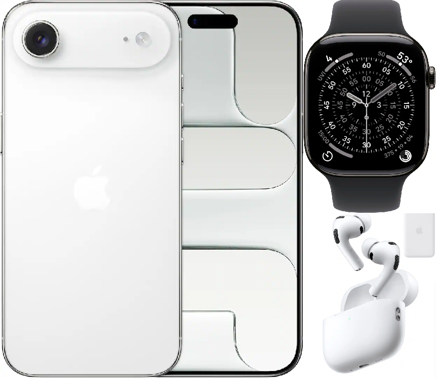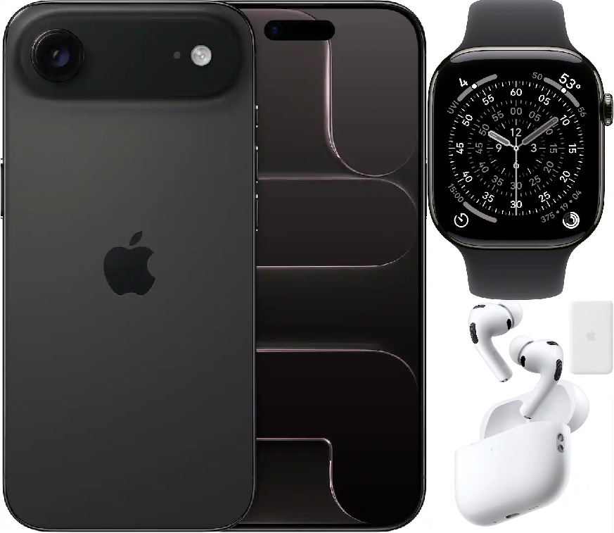 Bundle 1TB Apple iPhone Air New (Unlocked) Space Black | iPhone Air MagSafe Battery | White AirPods Pro 3 | Apple Watch Series 11 (GPS+Cellular) 46mm Titanium Case with Slate Black Sport Band