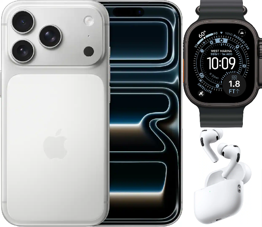 Bundle 256GB Apple iPhone 17 Pro New (Unlocked) Cosmic Orange | White AirPods Pro 3 | Apple Watch Ultra 3 (GPS+Cellular) 49mm Titanium Case with Black Ocean Band